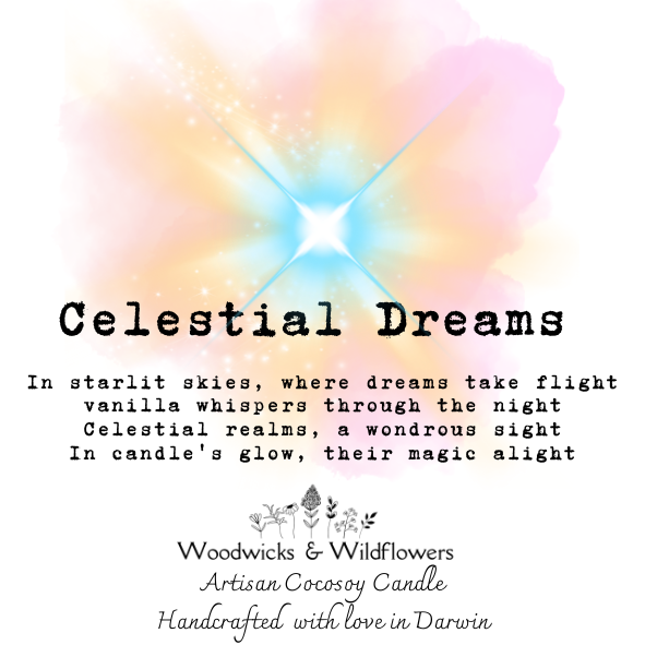 Envelop yourself in the warm embrace of vanilla, a scent that evokes comfort and blissful relaxation. Whether you're unwinding after a long day or setting the mood for a special moment, let Celestial Dreams transport you to a realm of celestial tranquility.